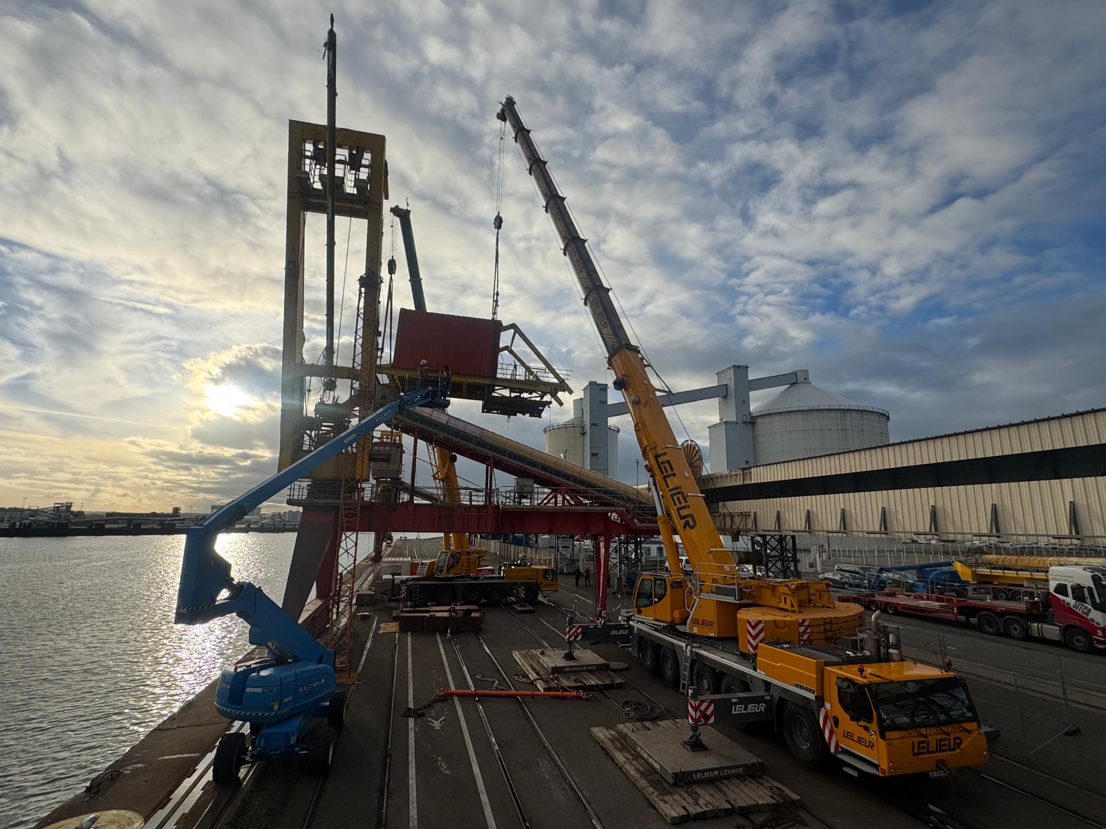 La semaine dernière, nous avons mené une mission technique sur le terminal sucrier du port de Calais. Nos équipes ont démonté une grue portuaire utilisée pour charger le sucre sur les navires d’exportation.
